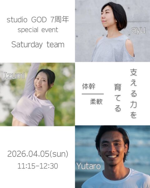 いつもstudioGODでのヨガやピラティスの時間を共に楽しんでくださりありがとうございます。