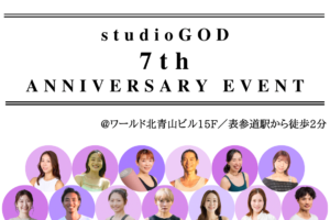 週末土曜日のstudio GODクラスを75分で一気に体感できるstudio GOD 7周年イベント特別コラボレッスンです。